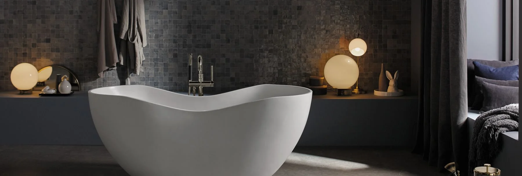 Kohler offers a variety of bathtubs in different styles, materials, and colors including walk-in bathtubs, freestanding bathtubs and hydrotherapy tubs. Kohler tubs are available in a variety of materials, including acrylic, enameled cast iron, and Lithocast. Lithocast is a cast resin material that allows for new designs and textures.